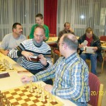 Markus Eichhorn (Bildmitte, mit Uhr) gewinnt das Monats-Blitzturnier im Dezember. Traditionell beenden wir das Jahr mit einem Weihnachts-Blitzturnier am letzten Freitag vor Weihnachten. Zu Glühwein und allerlei Gebäck nahmen 16 Spieler am Turnier...