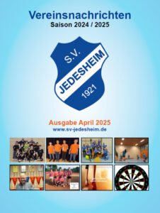 Vierteljährlich erscheinen die „Vereinsnachrichten“ des SV Jedesheim. Die April-Ausgabe umfasst 68 Seiten. Alle acht Abteilungen berichten über ihr Programm und ihre Veranstaltungen. Die Schachabteilung ist auf den Seiten 51 bis 57 zu finden.
