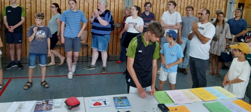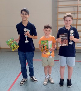 Mit nur 9 Teilnehmeern war die Altersgruppe U16 diesmal nicht so gut besucht – im Vorjahr waren es noch 23 Spieler. Hier dominierte Turnierfavorit Aksh Singh (VfL Leipheim) mit 7,5 Punkte und ohne Niederlage. Im Vorjahr belegte Aksh noch Rang 2. Kilian Wagner (SC Kempten) und Valeriy Rot belegte den Plätze 2 und 3.