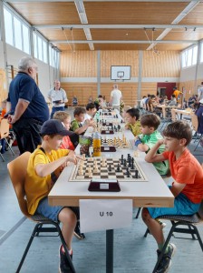 In der Altersgruppe U10 sicherte sich Amadeus Held (SC Laupheim) den 1. Platz. Amadeus gab nur zwei Unentschieden ab und konnte den Zweitplatzierten Abu Bagi (SC Kempten) somit auf Distanz halten. Platz 3 erreichte Moritz Benischke vom FC Bayern München mit 6,5 Punkten. Anton Braig (SV Jedesheim) spielte ein gutes Turnier und belegte ein Platz im Mittelfeld. Die Gruppe U10 spielte ein Rundenturnier mit 9 Kindern.