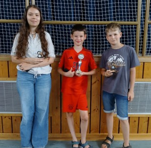 Großer Beliebheit erfreut sich nach wie vor das Beginner-Turnier. Insgesamt nahmen 32 Kinder und Jugendliche teil. Alle Partien gewinnen konnte der Turniersieger Noel Ries (Leipheim). Die Plätze 2 und 3 belegten Maya Laube aus Laupheim wurde Zweite und gemeinsam auf dem 3. Podestplatz fanden sich Henrik Erath und Lukas Kahler.