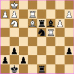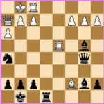 In der Diagrammstellung überraschte Schwarz mit dem starken Zug 29…Sd4!!. Dieser scheinbar einfache Zug entpuppt sich als Beginn eines kraftvollen Mattangriffs.
