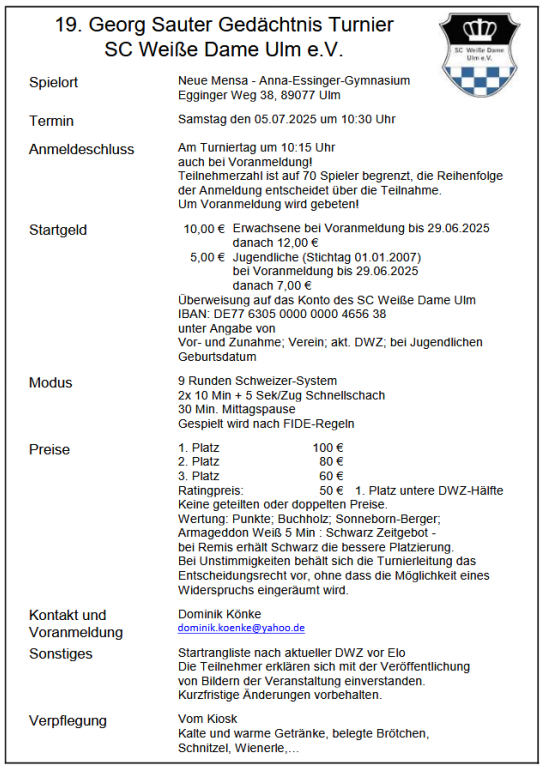 19. Georg-Sauter-Gedächtnisturnier Ulm