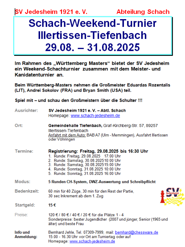 Ausschreibung Weekend-Schachturnier in Illertissen